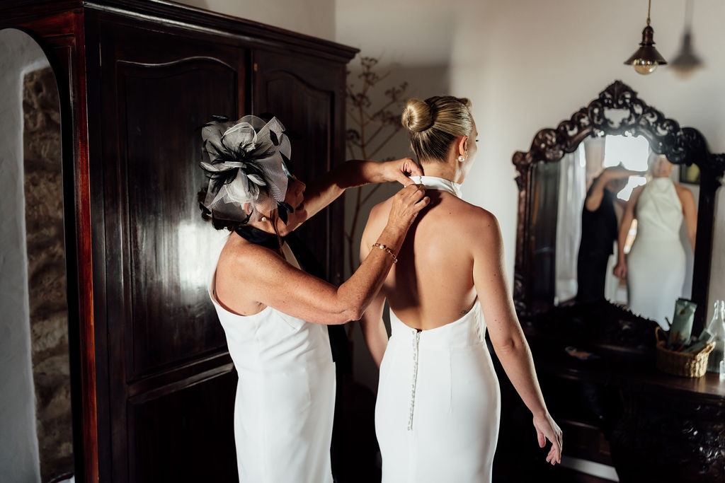De trouwdag begon met intieme en rustige voorbereidingen in een ontspannen Ibiza-setting. De ochtend verliep zonder haast, met ruimte om het moment bewust te beleven en de toon te zetten voor de rest van de dag.