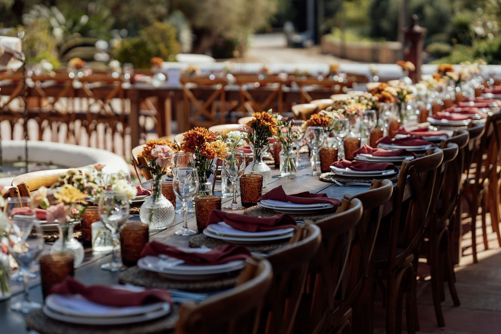 Het diner vond plaats aan lange tafels in de buitenlucht, met warme tinten en moderne stylingdetails. Het ontwerp was bewust en toch ontspannen, en nodigde gasten uit om samen te genieten en verbinding te maken.