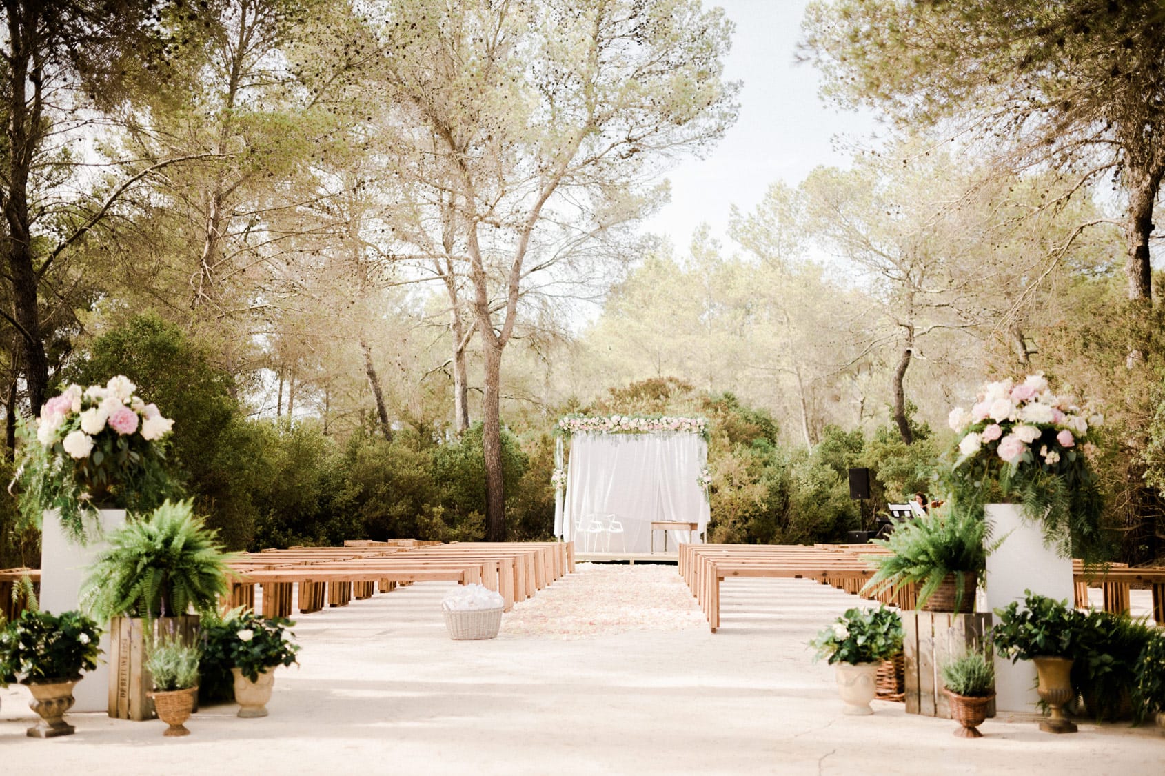 Juridisch gezien is het trouwen op openbare stranden in Ibiza een grijze zone. Technisch gezien is zo’n huwelijk niet wettig. Toch zijn enkele van de mooiste trouwlocaties op Ibiza luxueuze beachrestaurants met een vergunning, waardoor jullie in bepaalde zones van het strand kunnen trouwen. Daar kunnen jullie dan een ceremonie op blote voeten in het zand houden.